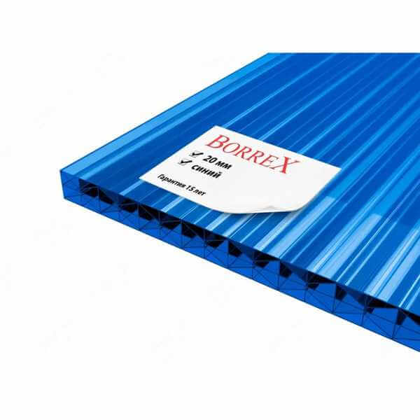 Сотовый поликарбонат 20 мм BORREX синий 2100х12000 мм