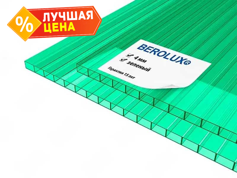 Сотовый поликарбонат 4 мм BEROLUX зелёный 2100х6000 мм