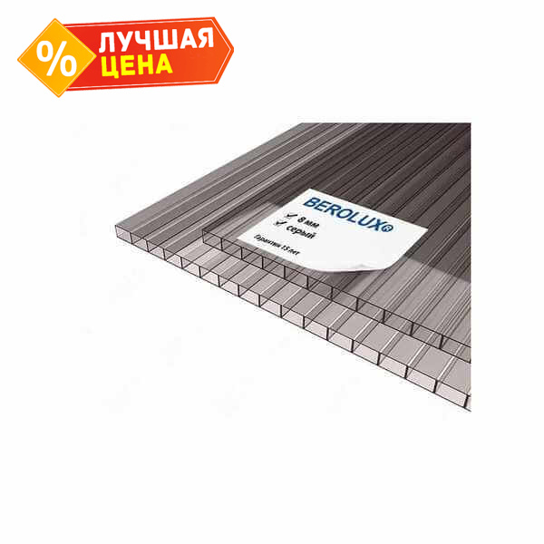 Сотовый поликарбонат 8 мм BEROLUX серый 2100х12000 мм