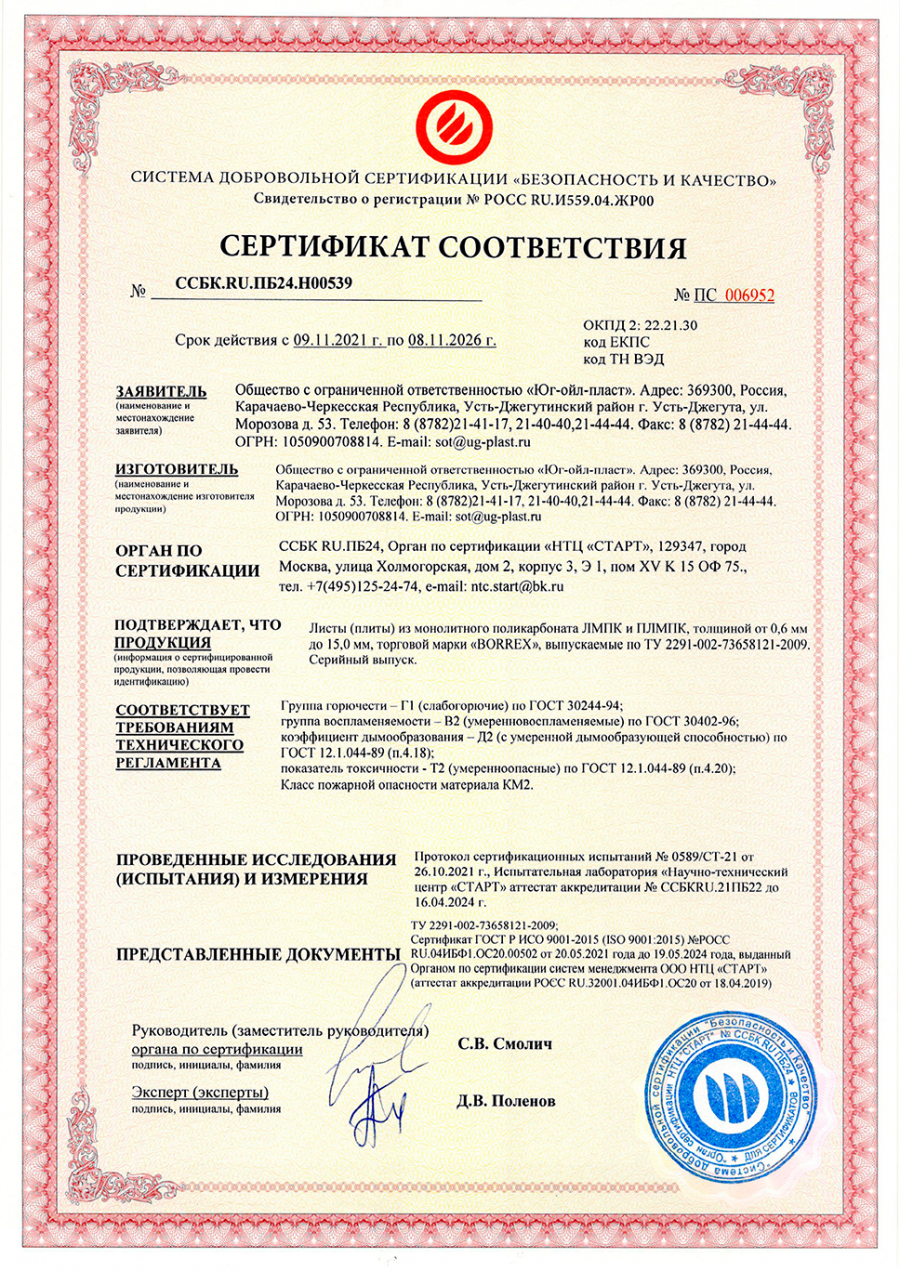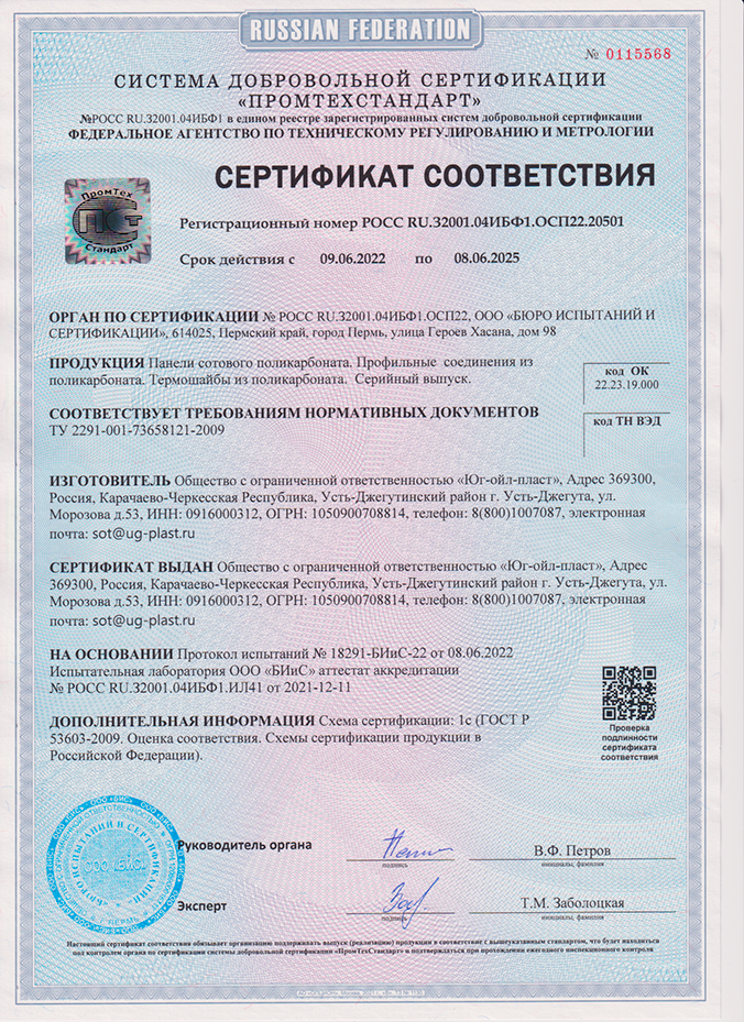 Подтвержденное сертификатами и действующими ГОСТ