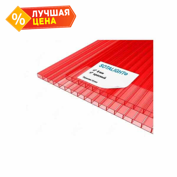 Сотовый поликарбонат 8 мм SOTALIGHT красного цвета размером 2100х12000 мм - это прочный и легкий материал, который отлично подходит для использования в различных строительных и дизайнерских проектах. Поликарбонат обладает высокой прочностью и устойчивостью к воздействию внешних факторов, что делает его идеальным выбором для создания крыш, навесов, ограждений и других конструкций.