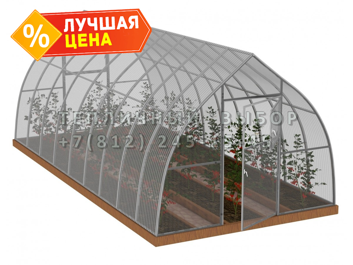 Теплица из поликарбоната Усиленная Капелька 3х6 h=2.3 м профиль 25х25 мм